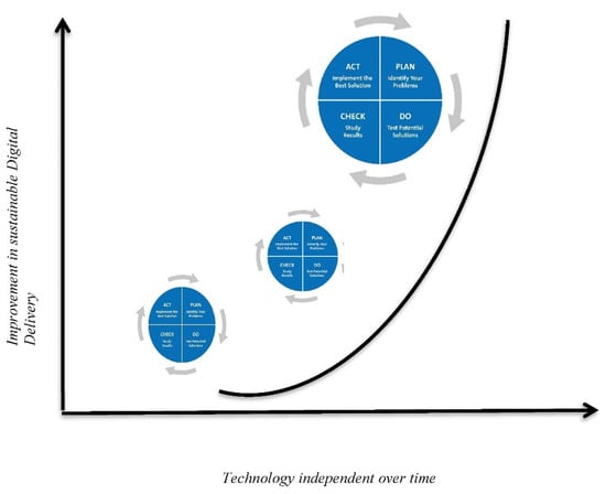 Pursuing sustainability in digital delivery amid modern, postmodern challenges is complex; it requires an incremental approach to delivery but identifying and determining the key elements of the delivery becomes critical to impart sustainable digital systems in higher education institutions. Thus, we suggest using the model of the Deming Cycle (Plan-Do-Check-Act) incrementally. Further,