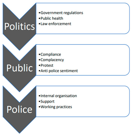 The British model of policing enshrined in Robert Peel’s doctrine, the people are the police, and the police are the people steers a balance between law enforcement (i.e., security of the state) and serving the public (i.e., protecting the citizen). The first may involve the exercising of coercive control, for example, in maintaining public order, while the second may involve more community-enhancing strategies such as harm reduction and meaningful community engagement. Loader (2016, pp. 429–30) points out that Peel’s principles ‘speak only partially to the challenges of urban policing’ nowadays. Certainly, the ideals associated with Peel’s principles take on a new perspective when police seek to secure ‘observance of the law’ and at the same time ‘seek and preserve public favour and ‘secure and maintain the respect and approval of the public’. This is particularly the case when they do so in an ‘extreme environmental situation’ (Fleming and Brown 2022) that prioritizes public safety and at the same time vigorously enforces government legislation and regulations, not always with citizens’ consent (see Newiss et al. 2022; Ghaemmaghami et al. 2021; Laufs and Waseem 2020).