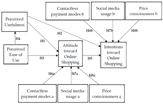 To our knowledge, a limited number of studies have empirically examined the intention of consumers to continue relying on technology to complete their online purchases the consumers’ online post COVID-19. Moreover, as per our understanding, no studies were found to serve as an extension of the technology acceptance model when it comes to the assessment of the most emerging shopping trends post pandemic, namely their impact on both consumers’ attitudes and intentions towards online shopping. To address this gap, this study that investigates the consumers’ behavioral changes after almost 2.5 years from the start of the pandemic, relies on the technology acceptance model (Davis 1989) that has demonstrated efficient results in picturing e-commerce acceptance manners. Contactless payment modes (McKinsey and Company 2021b), price consciousness (PwC Middle East 2021), and social media usage (PwC Middle East 2020), are today considered among the most emerging shopping trends because of COVID-19, therefore serve as extended variables in our proposed study model.