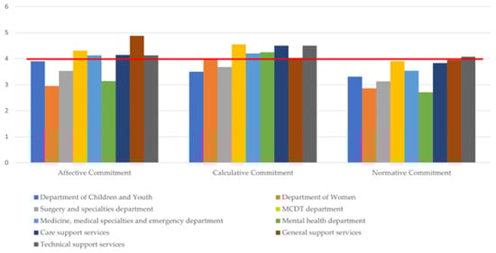 To assess the organisational commitment, the scale of Meyer and Allen (1997), in its version adapted for Portugal by Nascimento et al. (2008), was applied. This scale consists of 19 items, divided into three dimensions: affective commitment, with six items (2, 6, 7, 9, 11, and 15); calculative commitment, with seven items (1, 3, 13, 14, 16, 17, and 19); and normative commitment, with six items (4, 5, 8, 10, 12, and 18). Four items are negatively formulated (2, 5, 7, and 15), making it necessary to invert them when rating them. It is a Likert-type scale, with each item being rated on a scale ranging from 1 (“strongly disagree”) to 7 (“strongly agree”). To test the validity of this scale, a three-factor AFC was performed. After the AFC was performed, it was found that not all adjustment indices were adequate (ꭓ2/gl = 6.73; CFI = 0.89; GFI = 0.86; TLI = 0.84; RMSR = 0.056; RMSEA = 0.109) and that some items had factor weights below 0.50. Withdrawing items 5, 9, 14, and 15 for low factor weights or for being highly correlated with dimensions to which they did not belong, a new AFC was performed. This time the adjustment indexes are adequate (ꭓ2/gL = 4.30; CFI = 0.95; GFI = 0.93; TLI = 0.93; RMSR = 0.039; RMSEA = 0.083). Concerning internal consistency, affective commitment has a Cronbach’s alpha value of 0.86, calculative commitment a value of 0.91, and normative commitment a value of 0.91. Regarding construct reliability, the affective commitment had a value of 0.69, calculative commitment a value of 0.70, and normative commitment a value of 0.79. Concerning convergent validity, the affective commitment had an AVE of 0.52, computational commitment a value of 0.53, and normative commitment a value of 0.66.