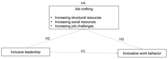 Job crafting in the form of (a) increasing structural job resources; (b) increasing social job resources; (c) increasing challenging job demand positively mediates the relationship between inclusive leadership and innovative work behavior.