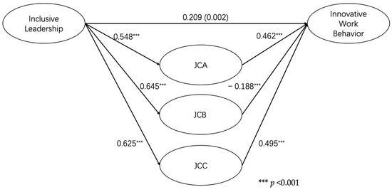 Finally, H4 proposes that job crafting behaviors (increasing structural job resources, increasing social job resources and increasing challenging job demands) mediate the relationship between inclusive leadership and employees’ innovative work behavior. In order to test this effect, we should compare the total effect of inclusive leadership on employees’ innovative work behavior and the indirect effect between them.