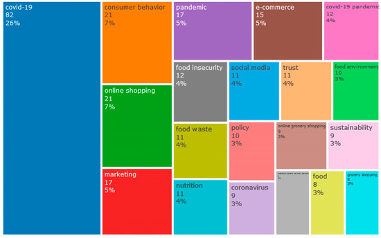 Analyzing authors’ keywords, which helps researchers identify the most relevant publications in the research field, can help identify research trends as well as gaps in the research field (Wang and Chai 2018). Analyzing Figure 6, which presents the 20 most frequent keywords, it is possible to identify that the most-cited keywords are ‘COVID-19’, ‘consumer behavior’ and ‘online shopping’. With these results, it is noticeable that the COVID-19 pandemic has had significant effects on social shopping research. It was also found that sales through social shopping and online shopping have evolved due to mandatory lockdowns and the impossibility of shopping traditionally, thus creating a modern digital culture, turning shopping into a digital activity (Gao et al. 2022).
