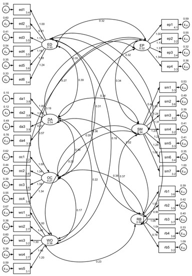 | Acceptable fit | 0.05 < RMSEA < 0.08 | CFI ≥ 0.90 | TLI ≥ 0.90 | 0.05 < SRMR < 0.10 |