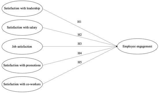 A review of the literature on the relationship between satisfaction with leadership and its influence on employee engagement reveals several key findings, all from different leadership perspectives. Authentic leadership has been linked to greater confidence in management, empowerment, and work engagement (Laschinger et al. 2012). Charismatic leadership has stronger effects on employee job satisfaction and work engagement when employees have a strong need for leadership (Breevaart et al. 2016). Transformational leadership positively relates to employee engagement, job satisfaction, and work engagement (Mencl et al. 2016; Sahu et al. 2017; Mon et al. 2021). Servant leadership positively relates to job satisfaction, job engagement, and affective engagement (Kaur 2018; Aboramadan et al. 2020). Ethical leadership positively influences engagement and job satisfaction (Özsungur 2019; Yuan et al. 2022). Engaged leadership, including inspiring, strengthening, empowering, and connecting behaviours, positively relates to job engagement and is mediated by satisfying basic psychological needs (Rahmadani et al. 2019; Robijn et al. 2020). Participatory leadership positively relates to engagement and job satisfaction, especially when employees experience a high level of fun at work (Chan 2019). Therefore, regardless of the leadership style exercised, leadership satisfaction plays an important role in influencing employee engagement and job satisfaction, which are important factors for organisational success (Barasa and Kariuki 2020; Mirda and Prasetyo 2022). Based on the above, the following hypothesis is put forward: