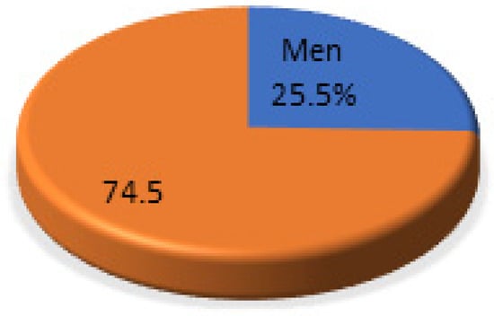 According to the data, the highest percentage of contracted workers in the banking sector are women, representing 74.5% (272) of the total (95% c.i.7: 67.0–81.8%) and only 25.5% (93) of the population are men (95% c.i.: 18.1–32.9%). See Figure 2.