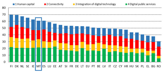Malta is quite active with regard to digitisation efforts, particularly within the public administration. Indeed, looking at Malta’s digital performance and progress on data relative to the EU and wider, as of 2022, Malta ranked 6th out of all Member States (MS) in the Digital Economy and Society Index6 (DESI) Country Profile Report compiled by the European Commission. In this respect, the provision of public services are given particular attention, especially since they are a prerequisite to achieving significant strategic goals, such as the OOP. Figure 1 is replicated from the report and demonstrates the Member States’ ranking.
