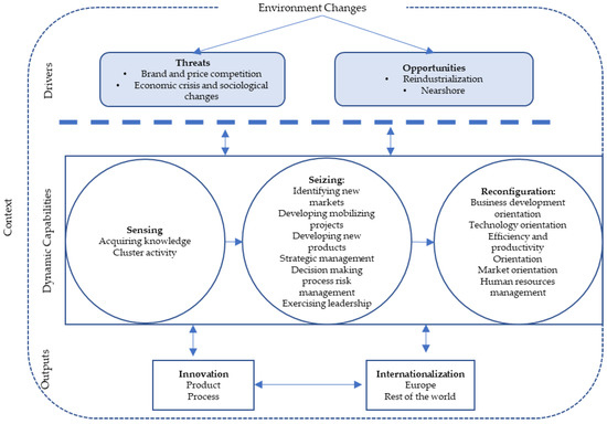 Using the previously determined third-order categories, a theoretical model was designed to explain how the Portuguese footwear SMEs responded to the loss of their competitive advantage (Figure 2). In this follow-up, we use our case to illustrate how a theoretical model can be derived.