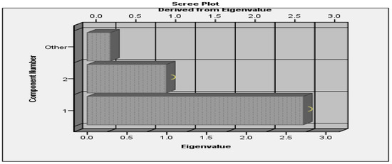 Table 3 presents the results of the sustainable profit factor in businesses for all the variables obtained in this study. According to the KMO test, the data are suitable for factorial analysis related to the investigation of accounting factors through audited financial statements in businesses for sustainable profit (KMO = 0.803 or 80%), while according to Bartlett’s test of sphericity, the data are important enough to measure the analysis of qualified staff and investments in technology (equipment, machinery, etc.) for sustainable profit (Sig. = 0.000). According to communalities, the variables that have the highest common variance are (NFI and TASS). According to total variance explained, two larger factors with a value of 1 were created, which together explain the variance of 77%. According to the rotated components matrix, it is noted that two sub-factors (F1.1 and F1.2) have been created. While in the first sub-factor, the variable that has greater weight for the sustainable profit of businesses through human behavior or the work of employees and emerging technologies is (TREV = 0.883), in the second sub-factor, the variables that have a weight greater are (TLIA = 0.695 and TASS = 0.685).