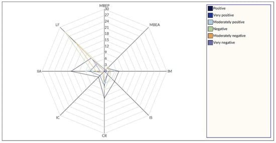 This research employed sentiment analysis to explore the relationships between different categories of data as a way of synthesizing and making sense of the data. It is important to note that NVivo does not rate content on a Likert scale based on how well it meets the Likert criteria specific to each piece of content. The sentiment of each word is analyzed in isolation, not taking into account the context of the words when this analysis is conducted. Table 4 provides matrix coding results according to the sentiment of the words.