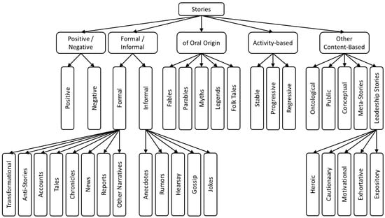 Based on all of the aforementioned extant categories of stories that can be utilized in storytelling, we have derived the taxonomy that can be reviewed in Figure 2.