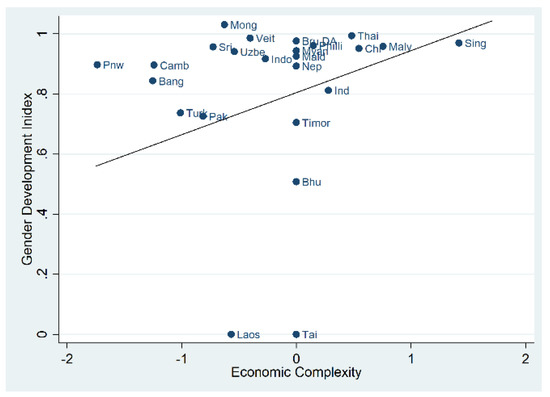 Gender equality has been thoroughly studied in the literature in relation to key areas such as health (King et al. 2018), education (Odaga 2020), economic complexity (Nguyen 2021), and democratic regime (Beer 2009). Asia-Pacific countries are some of the most distinct in terms of politics, economy, and culture. Despite tremendous economic progress and greater educational possibilities in recent decades, the region continues to experience multiple socioeconomic inequities, including gender disparity. The workforce of women in Asia continues to be low in comparison to others. Nguyen’s 2021 study suggests that, while women’s employment as self-employment, i.e., their contribution as family workers, and unsafe employment, will have a detrimental effect, their labour participation in service sectors or industry, in addition to wage and salaried employment, will help in improving economic complexity. Moreover, improved women’s health, equality in education, and women’s socio-economic empowerment and rights are favourable elements for economic complexity. There are several important variables that drive economic complexity, including improved government rules and regulations (Sweet and Eterovic Maggio 2015; Vu 2020), the use of digital platforms such as the internet (Lapatinas 2019), and import and export, defined as FDI (Kannen 2020). According to Nguyen (2021), the number of patents has a good impact, and financial development has a mixed effect. Whereas many economists have concluded that a diverse range of production (economic complexity) will boost the GDP of the country (Hidalgo and Hausmann 2009), the underlying causes of economic complexity remain unknown (Hidalgo 2021). Therefore, knowing the factors that influence economic complexity will not only have a big impact on the literature, but also a significant effect on how policy is implemented. Increasing gender equality results in a more diverse labour force altogether and, more crucially, diversifies the production system’s knowledge and abilities (Saxena 2014; Schneider and Northcraft 1999). Women have an edge in certain occupations that call for feminine work (Brynin 2006), which ‘pumps up’ the economy by presenting improvements within the economy by means of introducing new goods or economic activity (Paludi and Denmark 2018). Additionally, economic complexity is found to be significantly influenced by human capital (Sadeghi et al. 2020), and research shows that social reproduction is the main driving force of economic development (Braunstein et al. 2020). Consequently, gender equality can significantly reduce the complexity of the economy, particularly if human capital is improved. The result shows that these advancements in human capital have a favourable effect on economic complexity (Zhu and Li 2017). In the recognized sector, employers prefer to recruit trained individuals and did not prefer untrained females; gender variations in education can result in employment gaps (Hakura et al. 2016; Klasen 1999; Klasen and Lamanna 2009). Additionally, if women face obstacles to finding employment, parents may believe daughters are not advantageous for the family, and they may decide not to finance their daughters’ educations, which will build disparity in the case of education (King and Mason 2001; Cabeza-García et al. 2018). The majority of studies have discovered a linkage between women’s increased employment opportunities and economic growth (Elborgh-Woytek et al. 2013; Baliamoune-Lutz 2007; Irfan et al. 2012; Klasen and Lamanna 2009). According to some studies, gender parity in pay promotes economic growth by increasing women’s labour market involvement and lowering fertility rates (Galor and Weil 1993; Cavalcanti and Tavares 2016). Furthermore, women prefer children’s education over other things, and therefore women assign a higher portion of their income to their health and education (Kabeer 2018). A rise in the average number of school years (AYS) contributes to a decrease in economic and educational disparity (Lin 2007). Gender disparity in education is responsible for the decrease in literacy rates. (Summers 1994; King 1995). Human development can also be achieved by investing in education which can minimise inequality and poverty in the country. The region-wide rate of literacy in South Asian countries is around 62.4%, while in secondary and tertiary levels, enrolment ratios are quite low (ADB 2015). In South Asian nations, students from lower socio-economic backgrounds have a low chance to complete education, which is a significant issue, particularly in Sri Lanka, Nepal, and Bangladesh. In Sri Lanka and Bangladesh, admittance to further education for women increased from 1990 to 2009, reaching a rate of around 57%. However, approximately one-third of the women in Pakistan enrolled in higher education, while India made less progress during that time. Along with the conventional factors behind gender development, development literature also realizes the importance of roles of agricultural and ecological factors in the process of gender-led growth. Based on a cross-country perspective, Hazarika et al. (2019) examines the relationship between ancestral ecological endowment and sex ratio in the population. Their analysis finds that more missing women are evident in those economies where the ecological endowment is lesser. The literature has argued further the importance of agriculture in the process of gender development. Findings by Alesina et al. (2013) and Hansen et al. (2015) have demonstrated that economies with longer histories of agricultural practices tend to follow the pattern of less equal gender role importance in the developmental process. Another recent study, by utilizing the observations from waves of World Values Survey, has stated that the roles of agricultural and ecological factors remain pivotal in shaping the attitudes towards women and gender development in the society (Jha et al. 202