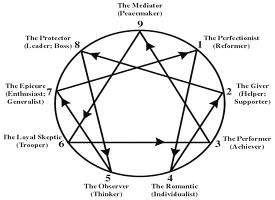 - Desmarais, Michèle, Ondina Galiano, Valerie Gazemar, and Julie Fréchette. 2020. The enneagram model for nursing competencies development-An exploratory qualitative study. Journal of Nursing Education and Practice 10: 1. [Google Scholar] [CrossRef]
