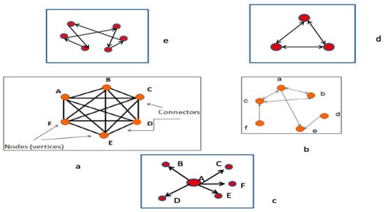 The variety of networks. Generally, networks consist of nodes (vertices) and connections (edges), The (a–e) demonstrate the unique connection and complexities in networks. Based on (Gulati et al. 2011).