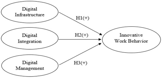 Employees will not be replaced, but technology is available to add to their work in order to establish new ways to integrate these technologies into their processes (Antonucci et al. 2021). Its functions will be performed more effectively, without wasting hours finding information or occupying itself with paper stacks. Faced with this scenario, technology provides more assertive demands, greater flexibility, and access to information; this changes employees’ work behavior because it allows them to be resilient, adaptive, and directed to collective alignment. Moreover, one of the reasons technology has advanced in recent decades is that digital transformation has expanded the human capacity to reflect on routine issues and challenges and find creative and innovative solutions. Therefore, it is interesting to test to what extent digital infrastructure can stimulate innovative work behavior. On this basis, hypothesis 1 (H1) is suggested: