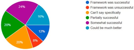 Moreover, Figure 2 shows the success rate of the ESG framework being used in the respective organizations. Regarding the question on standards connected to sustainability, all 25 respondents provided a positive response. Six managers responded to the framework being ‘somewhat successful’, whereas five respondents reported that it was ‘partially successful’. Combined, they comprise about 40% of the survey sample. Another five respondents reported that they ‘cannot say specifically’, showing that they were doubtful of the success of the sustainability framework. This response was seconded by four others, who responded that it ‘could be much better’, and another two from ‘IT-enabled-services firms’, who declared the framework adopted in their organization to be unsuccessful.