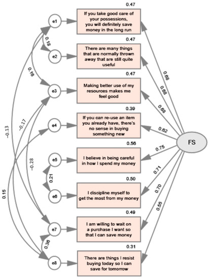 Table 4 reports the factor loadings and communalities of all eight items in the scale. The results show the highest factor scores for the item “I believe in being careful in how I spend my money”, while the lowest value was for the item “There are things I resist buying today so I can save for tomorrow”. According to Hogarty et al. (2005), a factor score greater than 0.4 can be considered a significant contribution, which is the threshold that all items in the scale tested reached.