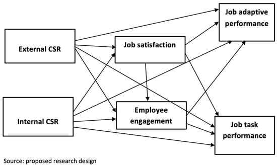 Corporate Social Responsibility does not only reflect the company’s responsibility to its environment but also represents the moral identity that may serve as a factor affecting job satisfaction (Singhapakdi et al. 2019). For employees, CSR may constitute the company’s recognition and appreciation, which can eventually improve their performance. Corporate Social Responsibility has been reported to affect job performance (Story and Castanheira 2019; Kim and Kim 2021), as those involved in CSR may achieve a sense of job and psychological security and satisfaction, which eventually affects their performance.