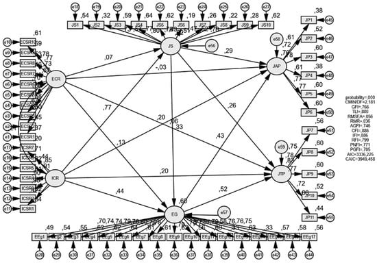 Structural equation modeling (unstandardized model).