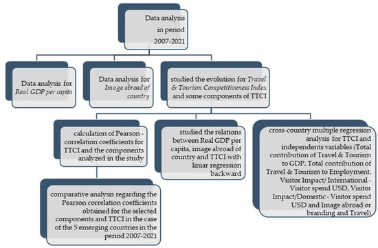 To perform the statistical analysis on Real GDP per capita, Image Abroad of Country, and Travel & Tourism Competitiveness Index, we performed the following algorithm for this study based on the methodology mentioned in Figure 3.