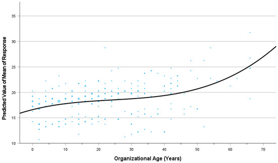 Curvilinear relationship between organizational age and organizational procedures scores. Organizational age was positively associated with organizational procedures scores when controlling for other factors.