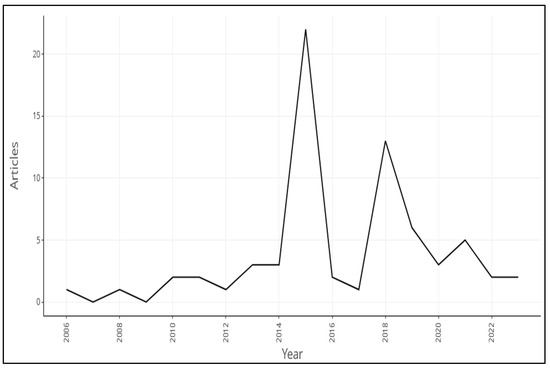 Despite the interest of the arts in management and business, scientific production in this field has been declining. The figure (Figure 1) shows a decline in production in this area after a peak in 2015.