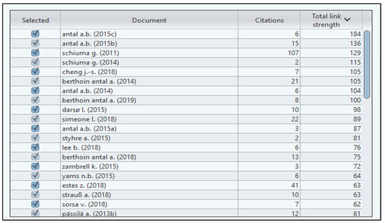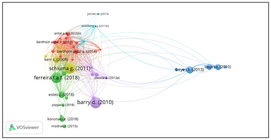 Upon examining the 69 articles in the sample and applying a minimum threshold of two citations per document, we identified 59 items (representing 85.5% of the sample) with interconnections among them (Figure 6). The substantial number of connections emphasizes the significance of the links among the selected items (Figure 7).