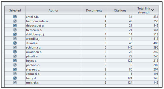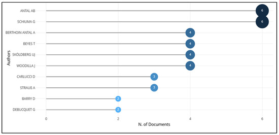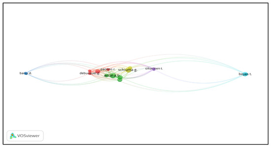 Analysis of the sample through bibliographic coupling shows that of the 69 articles, there are three outstanding authors (Figure 8).