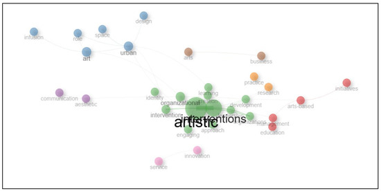 This work is remarkable for its originality in selecting keywords. The recent emergence of concepts such as arts-based initiatives and artistic intervention has piqued specific interest, focusing on a limited number of specific keywords in a precise field.