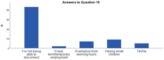 In question 15, of the women who answered no to Q.14, the vast majority (82.7%) considered that it was because they could not disconnect from the activity (Figure 1).