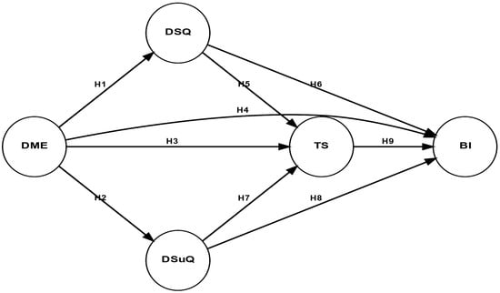 There is a serial meditation between the causal relationship of Digital Marketing Effectiveness (DME) and Behavioural Intention (BI) through Perceived Destination Sustainability Quality (DSuQ) and Tourist Satisfaction (TS).