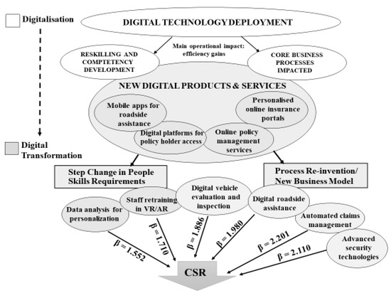 However, there are relatively few studies that examine the links between digitalization and CSR. In the context of the textile and clothing industry, Wiegand and Wynn (2023) demonstrated how digitalization promotes transparency in supply chains, while Eling and Lehmann (2018) explored the impact of digital technologies on sustainability practices in the financial sector. The literature concerning the interaction between digitalization and CSR in the insurance sector is similarly scant. This study aims to address this gap in the current literature and, more specifically, investigates the extent to which the digitalization of insurance companies’ operational processes, particularly in the automobile insurance sector, enhances the implementation of CSR, especially concerning the social dimension focused on policyholders (clients). This study assesses the impact of a set of factors related to digitalization on the adoption and perception of CSR among insurers and policyholders and contributes to the current literature by offering an innovative conceptual framework for understanding the impact of digitalization on CSR, particularly in the insurance sector. From a practical perspective, the results offer specific recommendations for insurers regarding the integration of digital technologies into their CSR strategies, thereby facilitating better claims management and a more responsive assistance process.