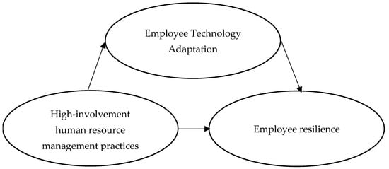 Employee technology adaptation mediates the relationship between high-involvement human resource management practices and employee resilience.
