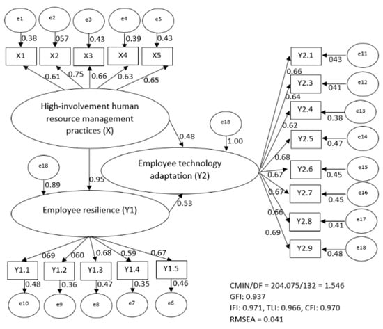 In the post-COVID-19 era, the need for a resilient workforce to maintain a competitive advantage has become increasingly critical. Despite advancements, there is a research gap in understanding how employee resilience is influenced by high-involvement human resource management practices and employee technology adaptation. This study addresses this gap by developing and empirically testing a mediation model linking to employee technology adaptation and resilience. Theoretical frameworks include the resource-based view, human co-adaptation, and positive organizational behavior. A cross-sectional survey of 322 employees from small and medium enterprises in South Sumatra was conducted. Structural equation modeling was used to analyze the mediating role of employee technology adaptation in the relationship between high-involvement human resource management practices and employee resilience. The results indicate that high-involvement human resource management practices positively affects both technology adaptation and resilience. Employee technology adaptation partially mediates this relationship. The findings offer practical insights for human resource managers, suggesting that fostering technology adaptation through high-involvement human resource management practices can enhance employee resilience. This study concludes with a discussion on the theoretical and practical implications contributing to the development of small and medium enterprises in the digital era post COVID-19.