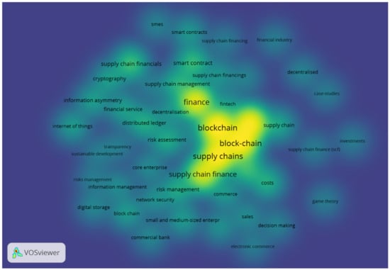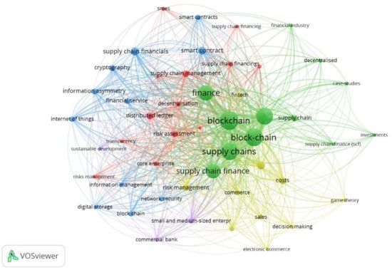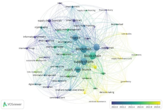 - The growing popularity of blockchain technology in SCF research is evident in the emergence of a prominent cluster of yellow terms related to this topic.