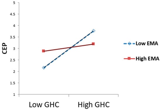 EMA moderates the relationship between GHC and CEP.