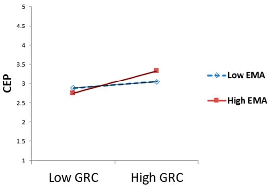 EMA moderates the relationship between GRC and CEP.