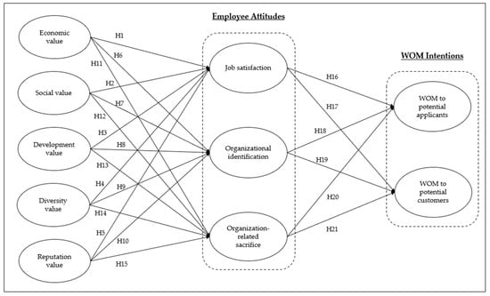 This study aims to fill this gap by examining the impact of employer branding on a wider set of current employee attitudes and its influence on their word-of-mouth intentions, which benefit the company. Specifically, it explores how employer branding affects employee satisfaction, organizational identification, and organization-related sacrifice, and examines the impact of these attitudes on employees’ word-of-mouth intentions towards potential employees and customers. The results will provide deeper insights for human resource and marketing management and enhance the existing literature on employer branding.
