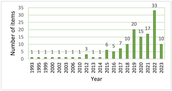 The study started in 1993 because it was the year when the first paper was published. Although research on natural capital accounting began more than 30 years ago, and as Figure 1, shows, most of the articles were published in the last 4 years. Until 2014, contributions were sporadic, and it was not until a year later, coinciding with the signing of the UNFCCC (2018), that scientific production increased considerably, an even greater increase from 2018, the year in which the European Green Pact was enacted, whose objective was to place the EU on the path towards an ecological transition that culminates in reaching climate neutrality by 2050. In that sense, 2022 was the year with the highest scientific output to date, although 2023 is likely to follow the same trend, given that this study only covers articles published up to the date of the consultation. These data show the growing interest in NCA in the literature.