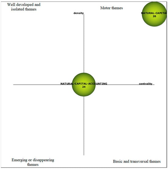 In the first analysis, all words were considered, excluding plurals and misspellings. The following figure shows the results for the entire 1993–2023 period without word groups, where “Capital-natural” is a driving theme and “Capital-natural-accounting” is a recurring theme that can be included in all four themes.