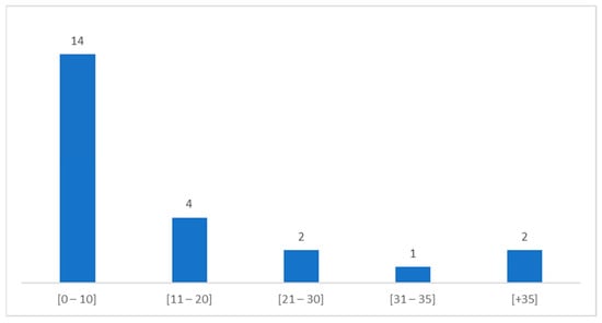 We have checked the number of citations for each article using Google Schoolar (https://scholar.google.com/, accessed on 24 October 2023). Most of them have a low number of citations, with 12 of them having zero or one citation (see Figure 4). There are two exceptions: the article titled “Attitudes of Z generations to job searching through social media” has 24 citations (Karácsony et al. 2020), and the article titled “Employer branding in the context of the company’s sustainable development strategy from the perspective of gender diversity of generation Z” has 33 citations (Rzemieniak and Wawer 2021).