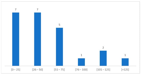 In terms of the references provided within each article, a noteworthy observation is that 12 works, constituting approximately 66% of the total, demonstrate a relatively modest number of bibliographic references, less than 50 references. In contrast, only two articles, comprising around 11%, exhibit a high number of references surpassing 75 (see Figure 5).