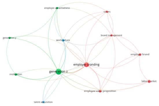 Given the research questions and the objective of identifying the maximum number of connections between employer branding (EB), talent management (TM), and Generation Z (GenZ), the operator “*” was employed alongside the terms “gen”, “employ”, and “brand” to encompass the various descriptors utilised in the search.