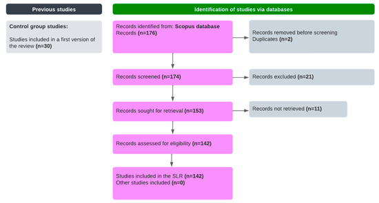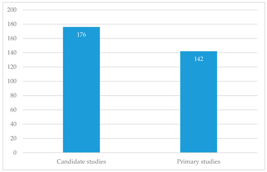Our candidate studies initially consisted of 176 scientific articles obtained through the application of the search string, as mentioned earlier. Two duplicate studies were identified. In addition, 11 documents were not available for download. After the selection process based on inclusion and exclusion criteria, 21 studies were excluded. The primary studies considered for a thorough review comprise 142 articles that successfully addressed the research questions, as depicted in Figure 2.