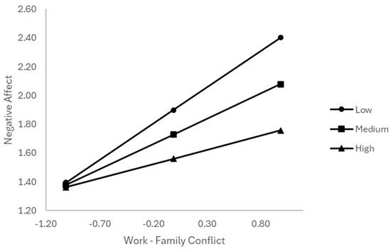 Our final hypothesis (H4) posited that psychological detachment would mitigate the impact of work–family conflict on positive and negative affect. Our findings partially supported this hypothesis, as psychological detachment was found to buffer the effect of work–family conflict on negative affect for women.