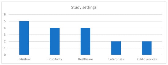 The results of this literature review revealed a diverse range of study settings encompassed within the reviewed articles. The exploration of these scholarly works unveiled a broad spectrum of organizational settings, with a notable emphasis on the industrial sector (; ; ; ; ), the hospitality and tourism sector (; ; ; ), healthcare sector (; ; ; ), enterprises (; ), and public services (; ) (See Figure 4). The inclusion of such varied contexts not only underscores the multidimensionality of the research landscape but also emphasizes the predominant nature of the phenomena under investigation.