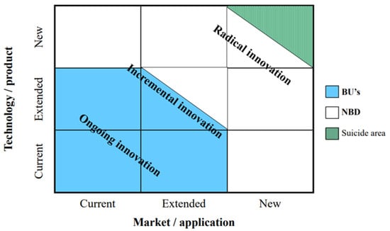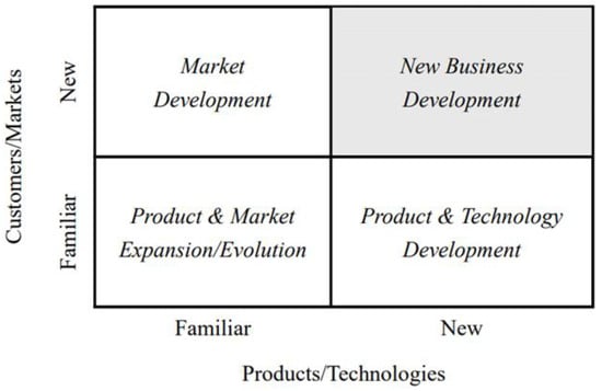 Another perspective, as examined by Berends et al. (2007), delves into the scope of business development through an innovation lens. Drawing upon concepts from Ansoff (1957, 1965) and Roberts and Berry (1985), they refined the nine-square grid framework (refer to Figure 3). Utilizing dimensions such as technology/product and market/application, they delineated the scope of new business development.