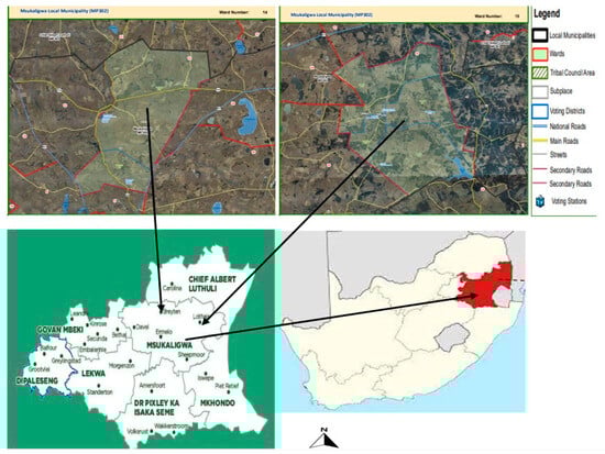 The study was conducted in Breyten and Lothair in wards 14 and 15, respectively, within the jurisdiction and demarcation of Msukaligwa local municipality, which is situated in the eastern central of Gert Sibande district municipality, Mpumalanga Province of South Africa (Figure 3). The research study areas are located within the latitudes −26°32′59.99″ South and longitudes 29°09′60.00″ East in terms of their geographical location. Mpumalanga is the second smallest province occupying 76,495 square kilometers (6.3%) of the total land of the country. However, Mpumalanga is a large region for agricultural activities in plant, animal, and mixed production. Gert Sibande district municipality is a Category C municipality and the largest of the three district municipalities in Mpumalanga, spanning over 31,840 square kilometers of the land with seven local municipalities, namely Msukaligwa, Chief Albert Luthuli, Dipaliseng, Mkhondo, Govan Mbeki, Lekwa and Dr Pixley ka Isaka Seme. Msukaligwa local municipality is predominantly rural, coverers a total area of 6016 square kilometers with a total population of 199,314 people, with Breyten and Lothair having 14,347 and 6099 people respectively (Stats SA Census 2022). According to the Mpumalanga Department of Finance (2015), the most productive economic and highly contributing sectors towards the gross domestic product (GDP) in Gert Sibande district and Msukaligwa in particular include but are not limited to agriculture, mining, manufacturing, utilities, construction, trade transport, finance, and community services. The leading industries in terms of employment are trade, community services, and agriculture with 23.7%, 19%, and 11.5%, respectively). Agriculture is deemed as a crucial economic pillar within the Mpumalanga province. As a result, it is against this backdrop that Mpumalanga province, Gert Sibande district, and the Msukaligwa local municipality was preferred as the choice of location to undertake this study.