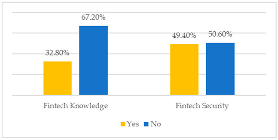 Regarding their knowledge of Fintech, only 32.8% of the participants said they had a good knowledge of it (Figure 1). However, 49.4% said they were safe (Figure 1).