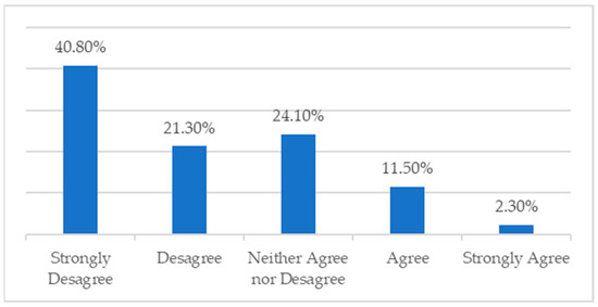 Regarding feeling more likely to use a Fintech after the COVID-19 pandemic, most of the participants said they disagreed or strongly disagreed with this statement, with only 20% of the respondents agreeing (or strongly agreeing). In the literature, Versal et al. (2022) stated that digital banks were more sought after by families and individuals during the pandemic than traditional banks. However, in this case, the respondents had not been significantly impacted by the pandemic regarding using a Fintech.